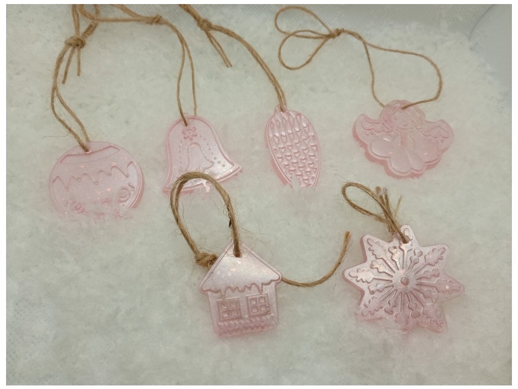 Sada ozdob vyrobená z pryskyřice na vánoční stromeček nebo jen tak na zavěšení jako dekorace.