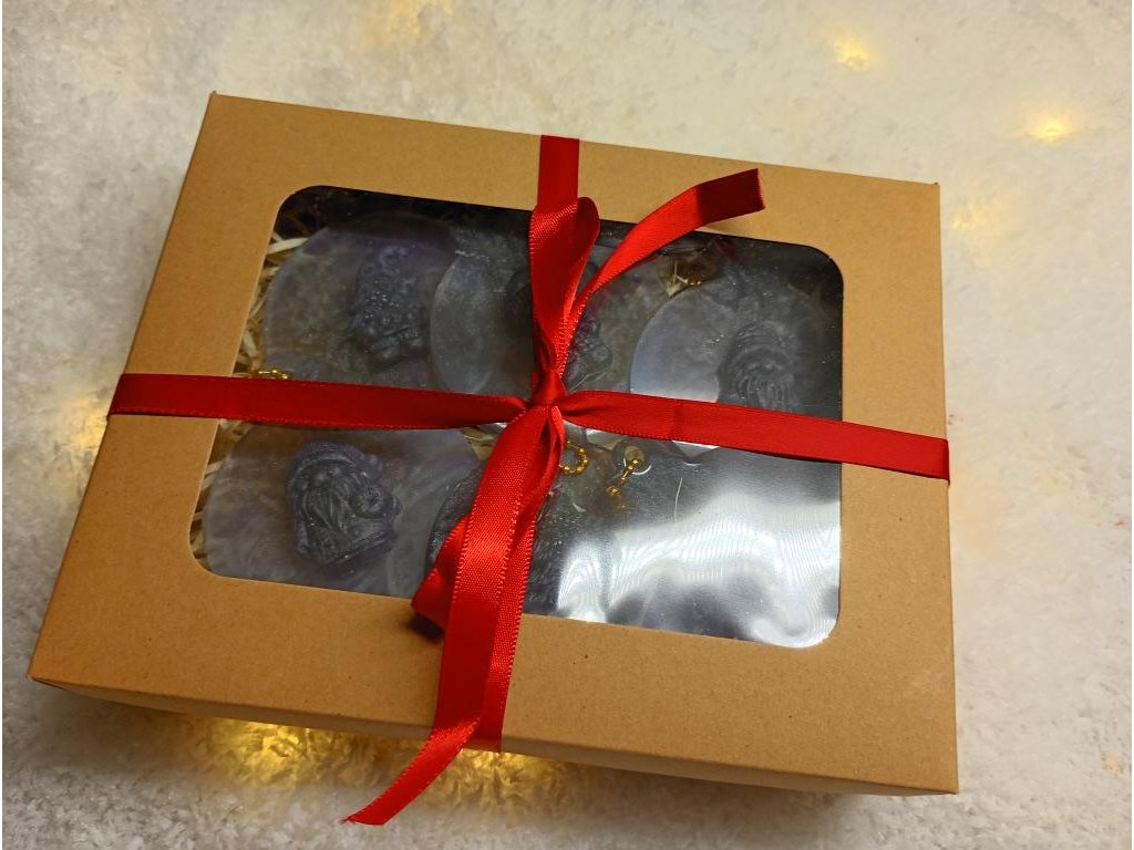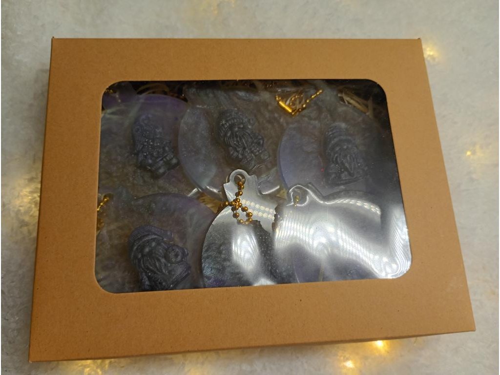 Sada ozdob vyrobená z pryskyřice na vánoční stromeček nebo jen tak na zavěšení jako dekorace.